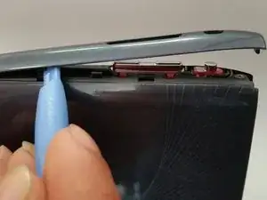 С помощью пластикового инструмента для вскрытия начните разбирать планшет по его бокам.