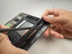 Используя лопатку, аккуратно подденьте аккумулятор. Он приклеен, поэтому может потребоваться небольшое усилие.