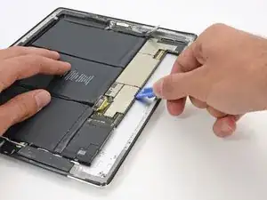Антенна Wi-Fi прикреплена к нижнему правому краю задней части iPad с помощью винтов и кабеля. Из-за ориентации антенны Wi-Fi крайне важно действовать осторожно, иначе это может привести к необратимому повреждению антенны Wi-Fi.