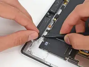 Может потребоваться переместить разогретый iOpener обратно на правый край iPad во время отделения клея. Это зависит от того, как долго iPad смог остыть, пока вы работали с ним.