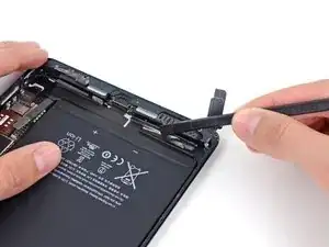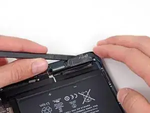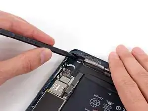 Используйте пластиковый инструмент для вскрытия, чтобы аккуратно поддеть разъём батареи в его гнезде на плате логики.