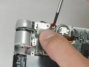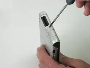 Открутите винт диаметром 2.5мм, расположенный на левой стороне устройства, отверткой Philips #00.