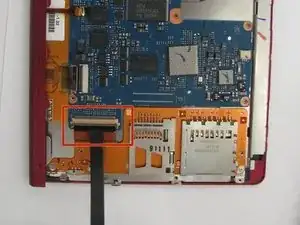 Обязательно отведите в сторону тонкую оранжевую ленту, подключенную к аудиопортам, порту адаптера переменного тока и мини-USB, перед снятием экрана.