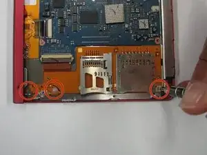 Используя крестовую отвертку, выверните три винта длиной 1,4 мм, расположенные на держателе SD/карты памяти.