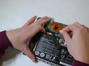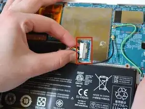 Удалите черную ленту, соединяющую батарею с материнской платой.