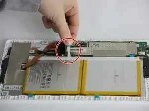Если не удастся, используйте черную пластиковую лопатку, чтобы аккуратно разрушить клеевые соединения снизу и потянуть вверх, чтобы удалить батарею.