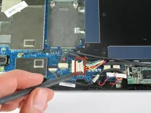 Используйте острую сторону лопатки, чтобы отсоединить батарею от материнской платы.