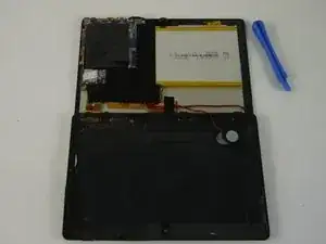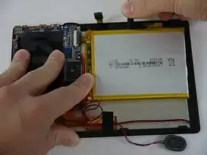 После отделения батареи от панели убедитесь, что она размещена лицом вниз над самим планшетом.