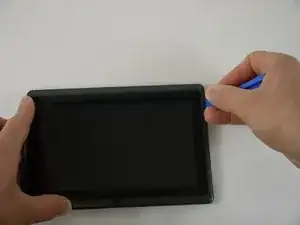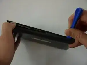 С помощью пластикового инструмента для открытия аккуратно разделите устройство. Пройдите по всему периметру устройства и осторожно положите две панели рядом друг с другом.