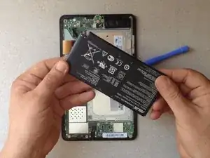 Батарея приклеена к рамке ЖК-дисплея двусторонним скотчем.
