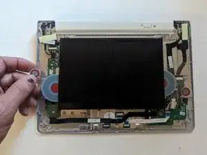 Снимите два винта Torx T6 длиной 6,6 мм возле шарнира.