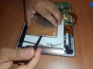 Используйте лопатку, чтобы осторожно отсоединить батарею от клея на её нижней стороне. Утилизируйте неисправную батарею.