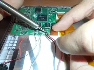 С помощью паяльника подключите новые положительные и отрицательные кабели к их соответствующим местам на материнской плате.