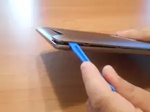 Осторожно вставьте лопатку под крышку задней панели, освободив её от защелок внутри.