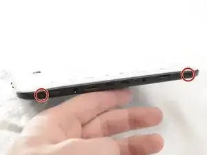 Удалите два винта на боковой стороне планшета, которые удерживают заднюю крышку, используя отвертку ifixit PH00.