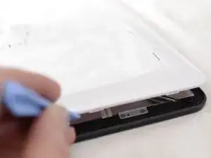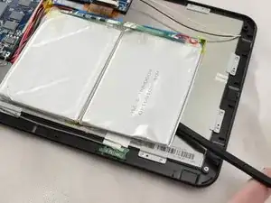С помощью лопатки ifixit подденьте батарею и двигайтесь по краям батареи, освобождая ее от клея.