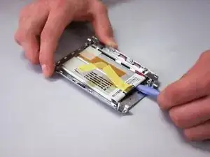 После удаления старой батареи соскребите старый клей с задней стороны устройства при помощи поддевного инструмента.