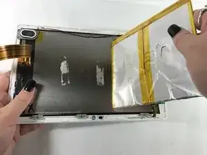 Батарея приклеена к передней панели с помощью клейкой ленты, поэтому не бойтесь приложить небольшое усилие при её извлечении.