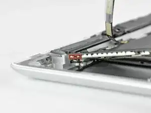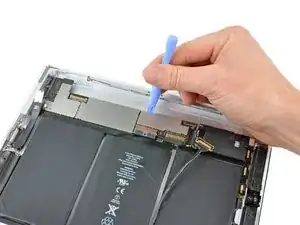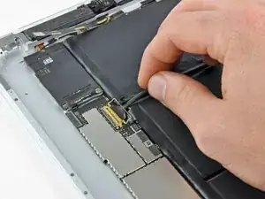 Поверните материнскую плату к центру iPad и отключите последнюю антенну в верхней части материнской платы.