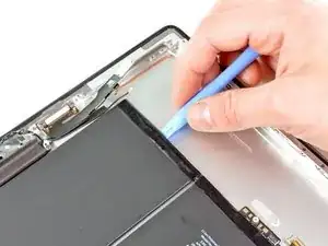 Удалите пластиковый инструмент для вскрытия из iPad и продолгите лопатку дальше под передним стеклом на глубину примерно 1.3 см.