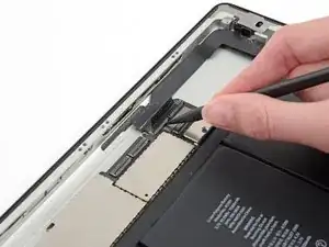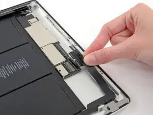 Аккуратно приподнимите левую сторону аккумулятора, повернув его в сторону правой стороны iPad.