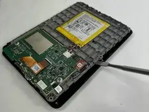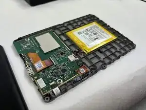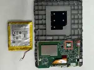 Батарейный блок может быть приклеен к серой пластиковой рамке. Будьте осторожны при его извлечении, чтобы не повредить батарею, так как она изготовлена из литий-полимерного материала, который легко воспламеняется и деформируется.