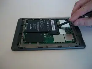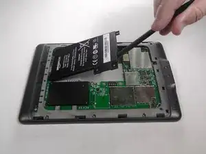 Используйте пластиковый инструмент для открытия, чтобы отсоединить шесть пластиковых зажимов вокруг нижней части задней панели Kindle.