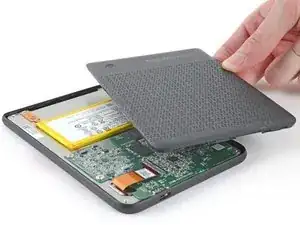 Практически вся поверхность внутренних компонентов eReader покрыта тонким водостойким покрытием, похожим на пластик. Имейте в виду следующее по мере продолжения разборки: