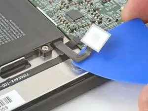 Вставьте кончик открывающего инструмента под гибкий кабель батареи.