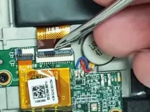 Перед удалением батареи обязательно отключите шлейфы под ней. Кабели могут прилипнуть к батарее во время снятия и повредиться.