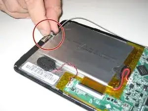 Удалите батарею, сначала сняв изоляционную ленту, которая ее держит. Затем начните аккуратно поддевать ее снизу и по краям пластиковым инструментом, пока батарея не освободится.