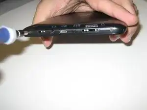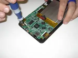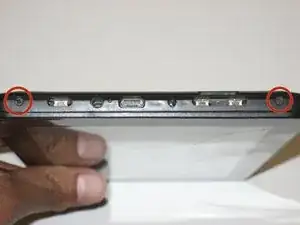 Удалите два винта с головкой Phillips размером 2.5 мм перед тем, как пытаться снять экран с устройства.
