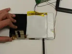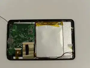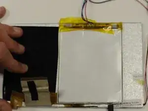 Удалите батарею, используя лопатку, чтобы осторожно приподнять батарею от металлического корпуса вокруг переднего экрана.