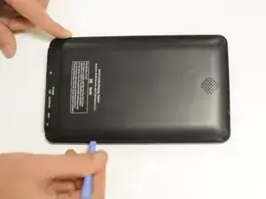 Вставьте пластиковый инструмент между задней крышкой и верхней крышкой, затем скользите по краям, чтобы приоткрыть.