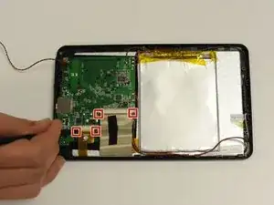 Найдите два шлейфа, прикрепленных к материнской плате устройства.