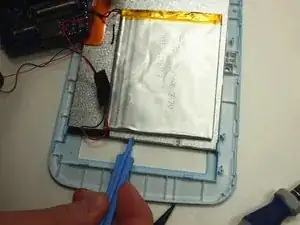 Используйте широкий пластиковый инструмент, чтобы медленно поднять каждую сторону батареи.