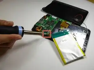 Используйте пластиковую карту, чтобы ослабить батарею от планшета. Обратите внимание, что она будет липкой снизу.