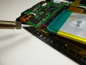 Используйте паяльник, чтобы отсоединить провода батареи от материнской платы.