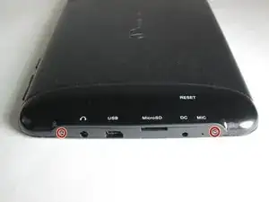 На нижней стороне планшета удалите два винта 3.6 мм с помощью отвертки Philips #000.