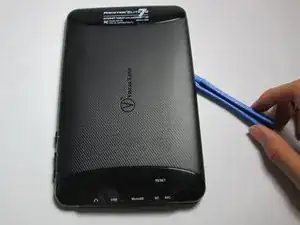Вставьте пластиковый инструмент для открывания в края планшета, чтобы его приоткрыть.