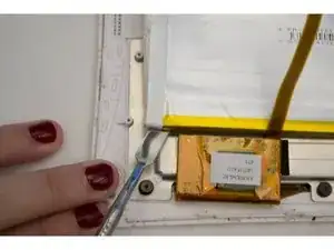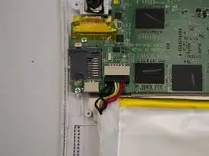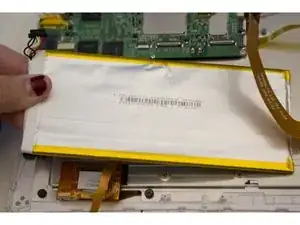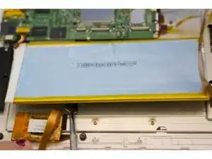 Батарея — один из важнейших компонентов любого портативного устройства, потому что без питания устройство не сможет работать. Установленная в DreamTab батарея похожа на плитку шоколада, завернутую в алюминиевую фольгу, и очень податлива. Сама батарея прикреплена к корпусу с помощью прочного клея, поэтому важно извлекать её аккуратно, поскольку при чрезмерном усилии она согнётся. Рекомендуем использовать металлические приспособления для вскрытия только в том случае, если пластиковые инструменты не дают достаточного рычага для отделения батареи от клея.