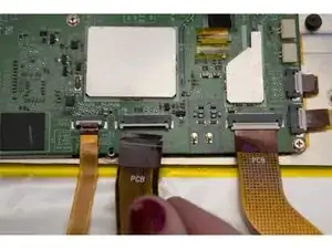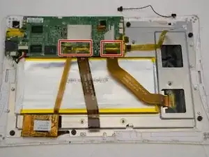 Отключите два пластиковых разъёма, перекрывающих батарею, от материнской платы.