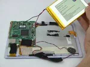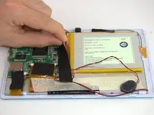 Динамик приклеен к задней крышке, будьте осторожны при вытаскивании проводов.