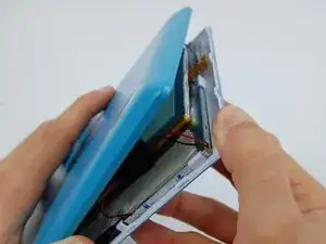 Используйте нейлоновую лопатку, чтобы приподнять батарею с правой стороны устройства. Медленно снимите клей под батареей.