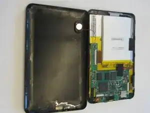Снимите заднюю крышку с помощью пластикового инструмента, открывая доступ к батарее и материнской плате.