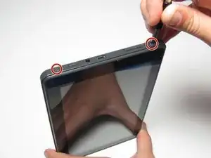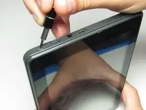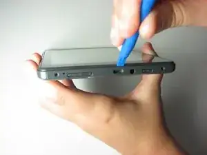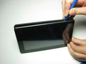 Поместите пластиковый инструмент для открывания между корпусом и экраном.