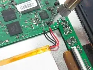 Отпаяйте два провода, соединяющие батарею с материнской платой.