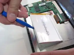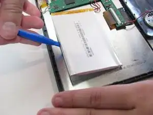 Используя синий пластиковый инструмент для открывания, поднимите батарею от устройства.