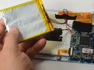Используя лопатку, зацепите батарею между батареей и экраном и оторвите ее от планшета.