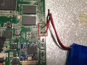 Существует небольшой серый провод, проходящий от зеленой материнской платы к батарее. Это заземляющий провод, который необходимо удалить от аккумулятора.